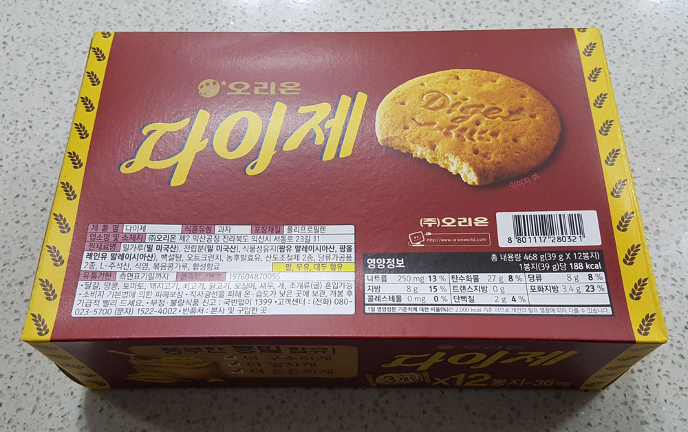 오리온 다이제 (12봉지) 내용량, 가격, 품목보고번호, 다이제 원재료 및 영양정보 外