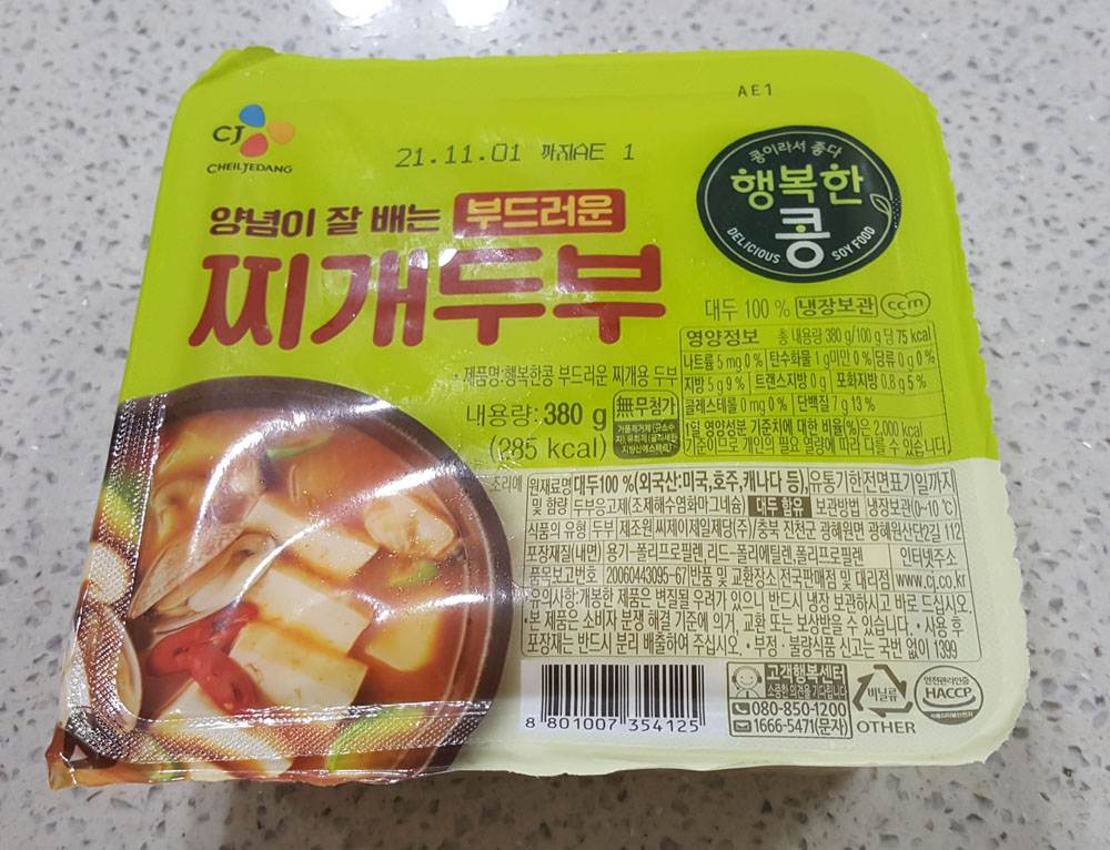 CJ제일제당 행복한콩 부드러운 찌개용 두부 380g 가격, 칼로리, 원재료 및 영양, 유통기한 外