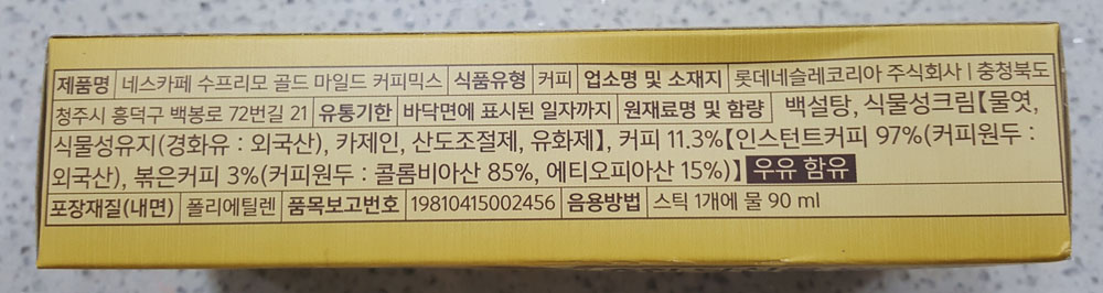 제품명 : 네스카페 수프리모 골드 마일드 커피믹스