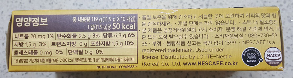◆ '네스카페 수프리모 골드 마일드 커피믹스' (10개) 제품 원재료명 및 함량