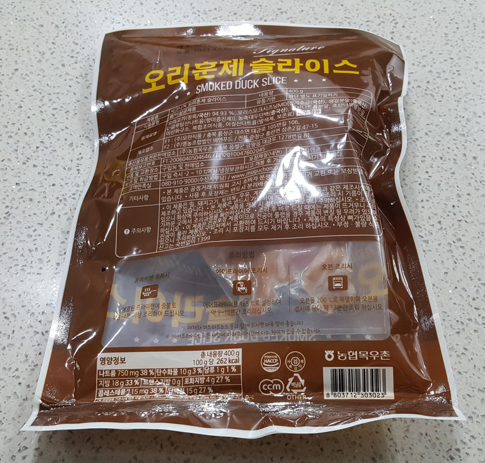 목우촌 시그니처 오리훈제 슬라이스 400g 가격, 보관 방법, 영양정보, 품목보고번호, 오리훈제 슬라이스 유통기한 外
