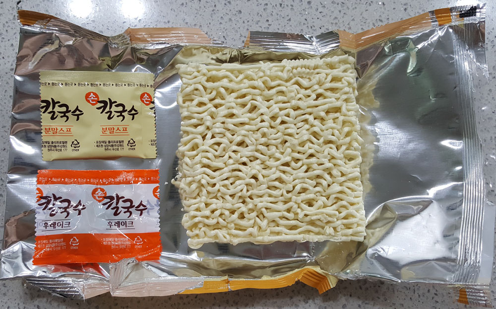 ▼ 삼양 손칼국수에는 분말스프와 후레이크가 들어 있습니다.
