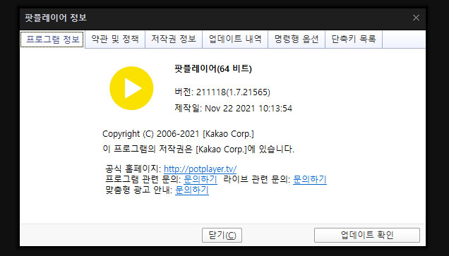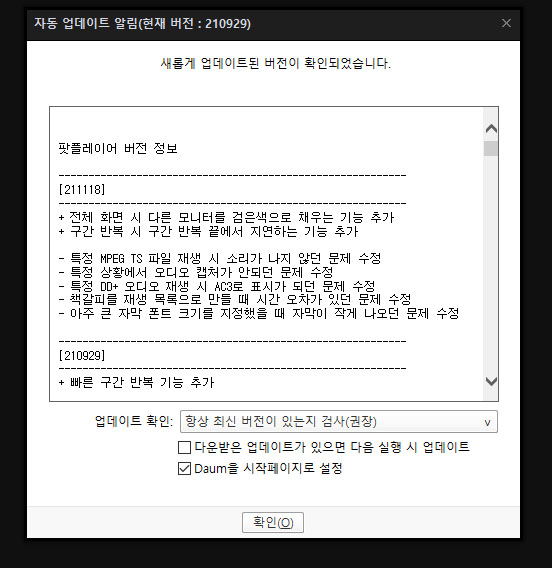 다음 팟플레이어 업데이트 정보 (2021년 11월 18일) - 추가나 수정된 부분