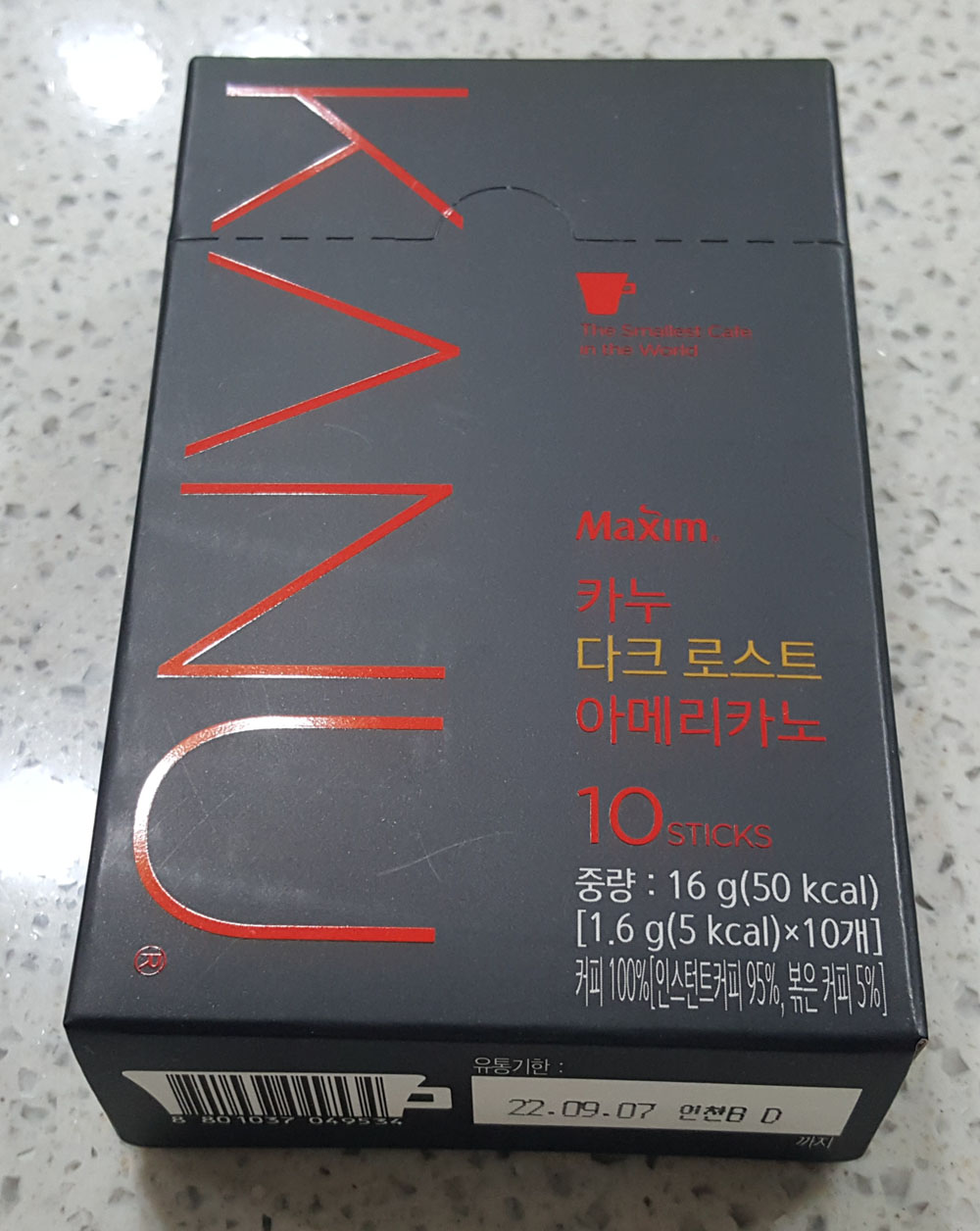 블랙커피를 마시는 손님을 위해 구매한 맥심 카누 다크 로스트 아메리카노 커피믹스는 맥심 카누 시그니처 다크 로스트보다 조금 중량이 적은 편입니다.