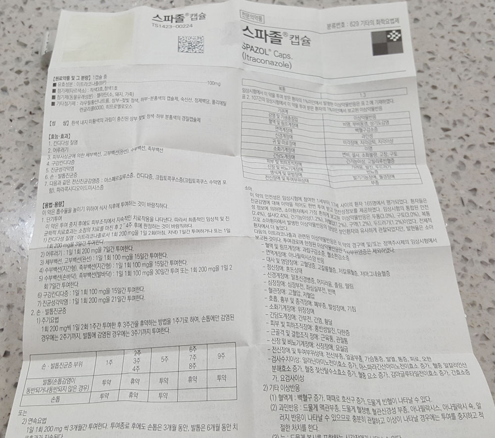 무좀약 스파졸 캡슐 성분, 효능 효과, 용법, 저장 방법 外