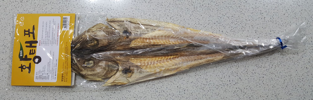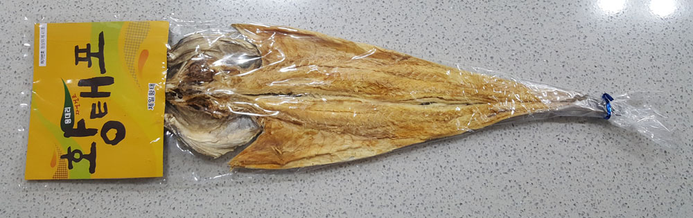 2021년 9월에 영동농협 하나로마트에서 8,000원에 구매한 용대리 황태포는 대관령 자연건조 황태포보다 크고 중량이 많이 나갑니다.
