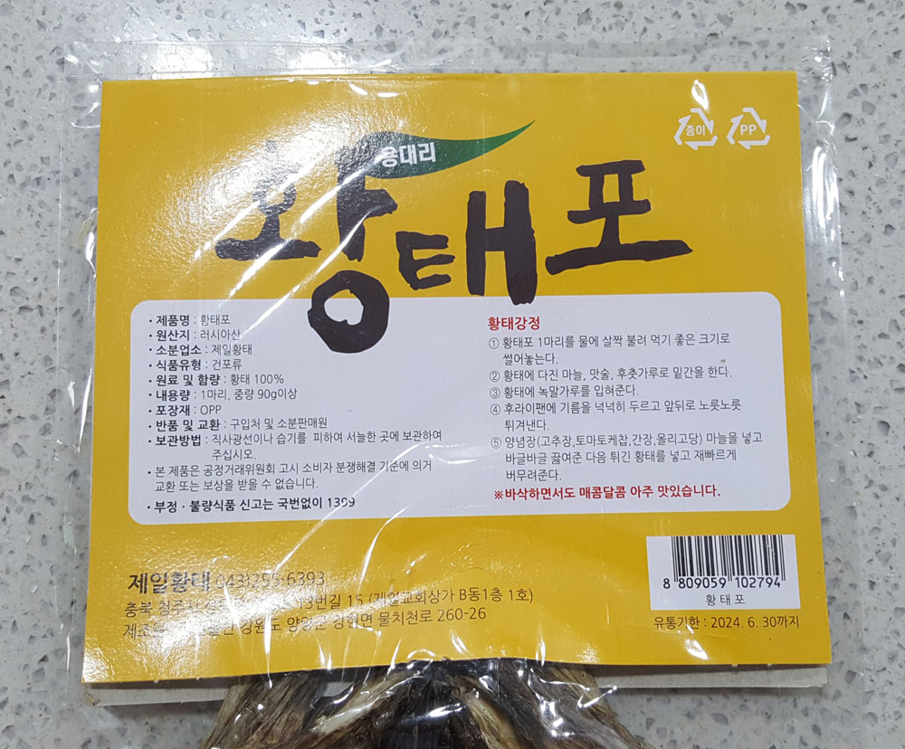 ☞ 대관령 자연건조 황태포 원산지, 중량, 가격, 유통기한, 보관방법