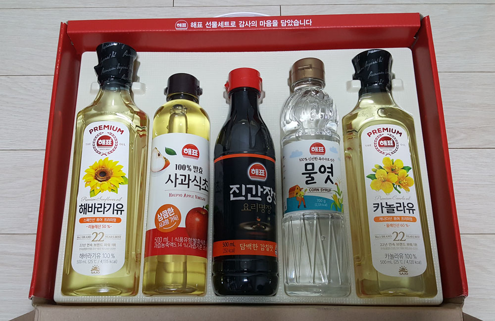 명절에 받은 해표 안심특선 V13호 선물세트(HAEPYO SPECIAL GIFT SET)의 구성품 및 구성품에 관한 간략한 정보는 다음과 같습니다.