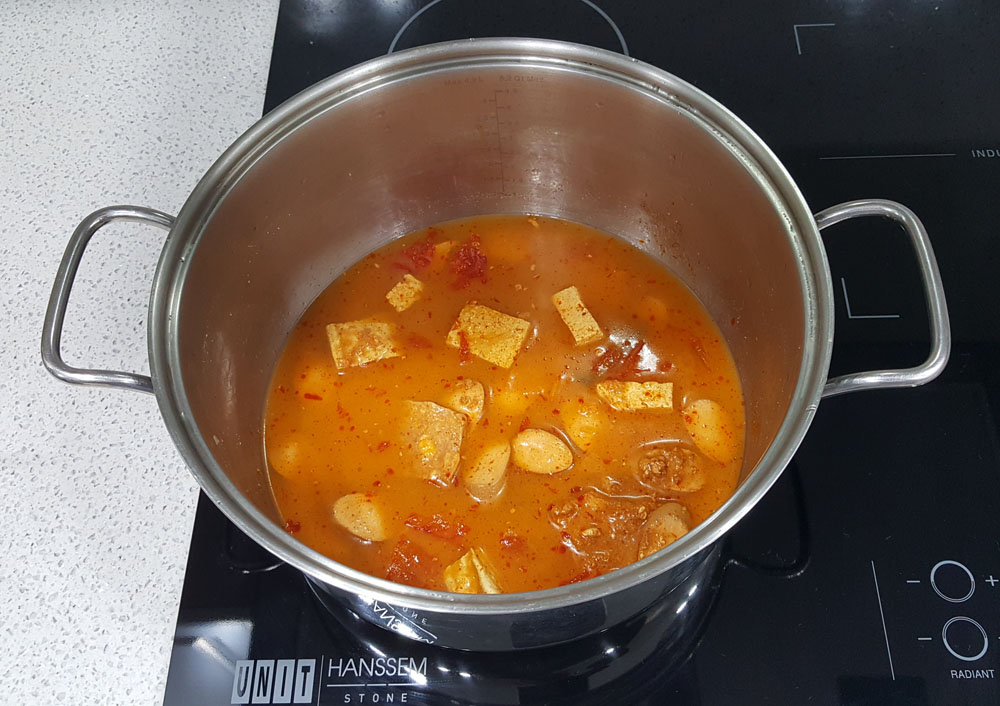 찌개용어슷후랑크 10%, 미트햄 5%, 배추김치 10%, 숙성김치베이스 0.7%