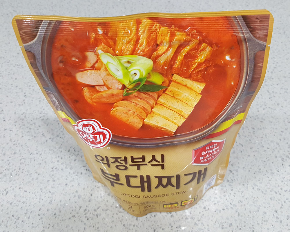 오뚜기 의정부식 부대찌개에 라면사리, 불린 당면, 떡, 만두 등을 넣으면 더욱 맛있는 부대찌개가 된다고 합니다.