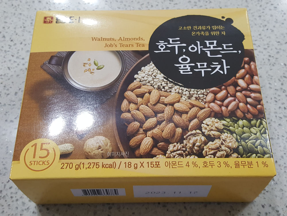 담터 호두, 아몬드, 율무차 내용량, 품목보고번호, 원재료 및 영양정보, 유통기한 外