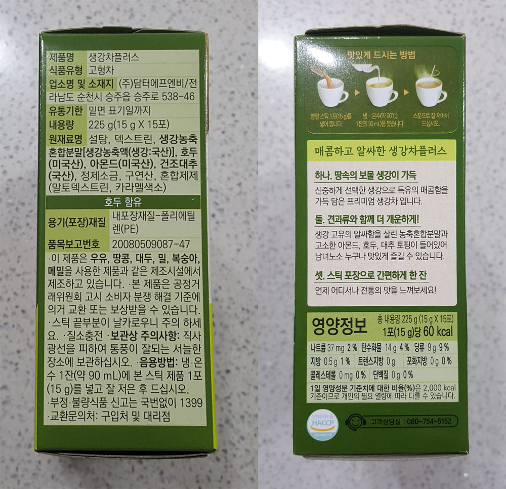 담터 생강차 플러스 내용량, 칼로리, 유통기한, 원재료 및 영양정보 外