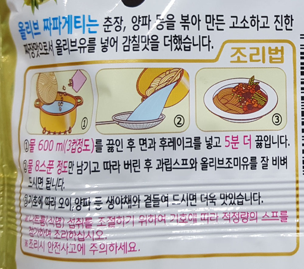 <농심 올리브 짜파게티 조리법>