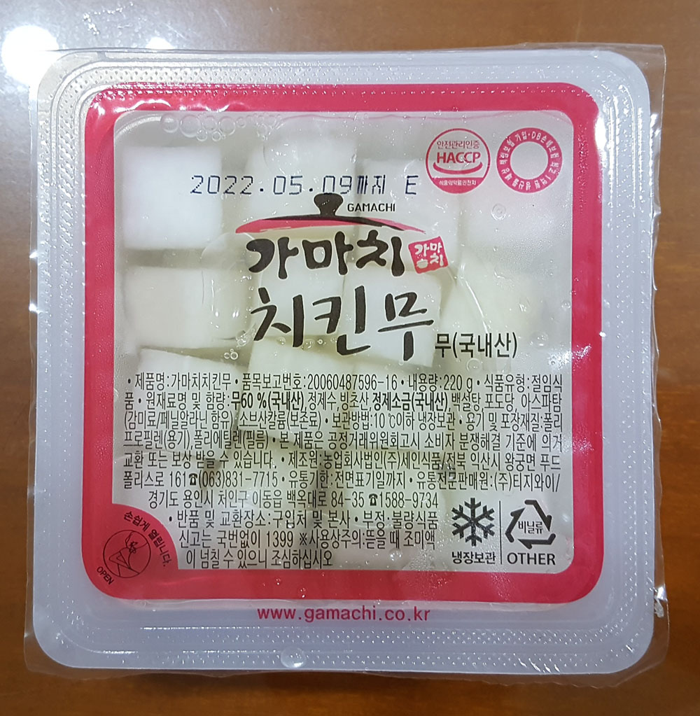 가마치 치킨무 제조원, 판매원, 내용량, 원재료, 유통기한, 보관방법 外