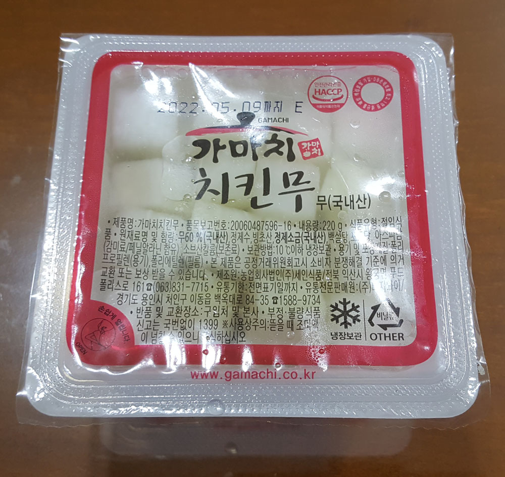 가마치 치킨무 제조원, 판매원, 내용량, 원재료, 유통기한, 보관방법 外