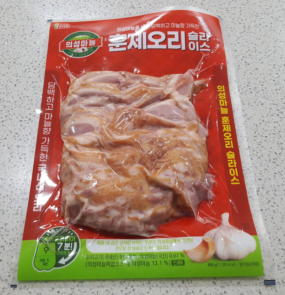 의성마늘을 넣어 담백하고 마늘향 가득한 의성마늘 훈제오리 슬라이스