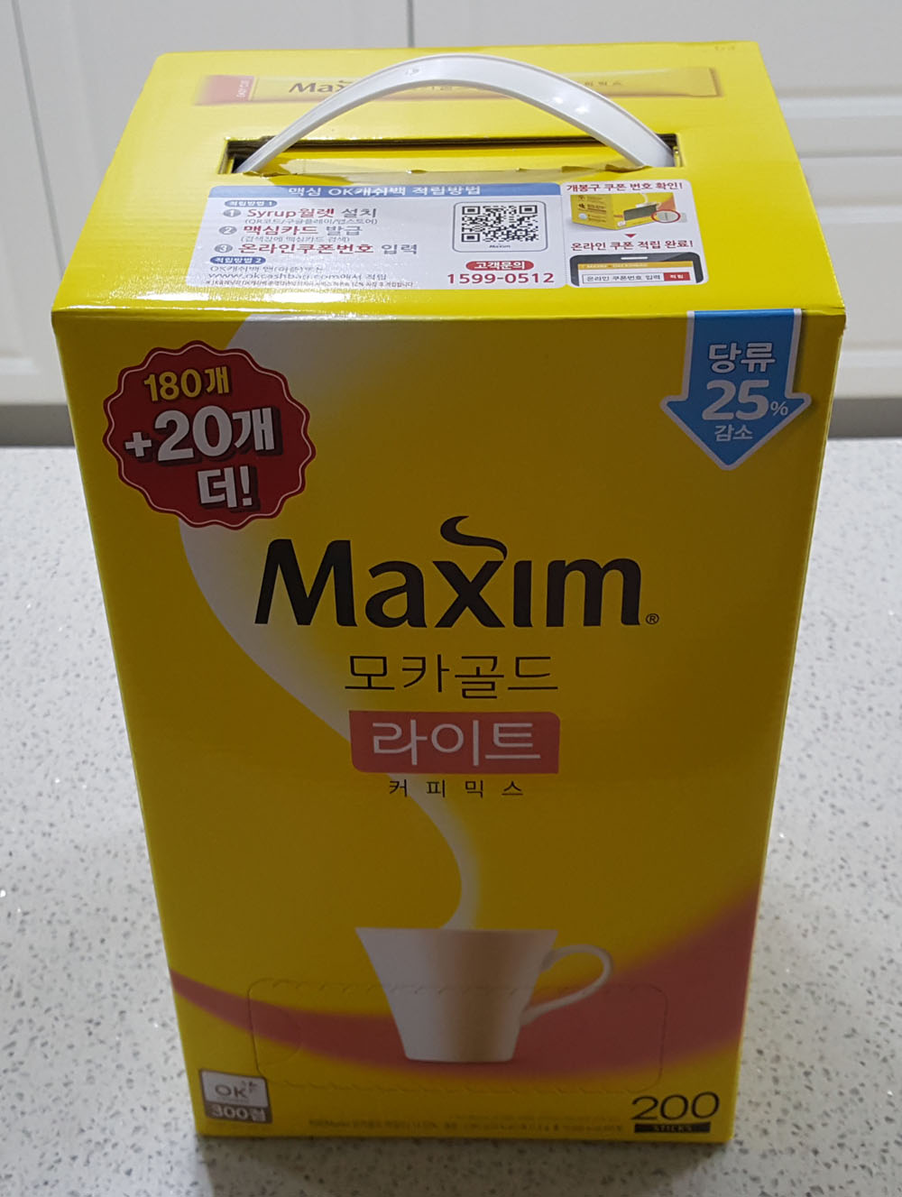 맥심 모카골드 라이트 커피믹스 (180개 + 20개 더!) 가격, 중량, 칼로리, 영양정보, 모카골드 라이트 커피믹스 유통기한 外