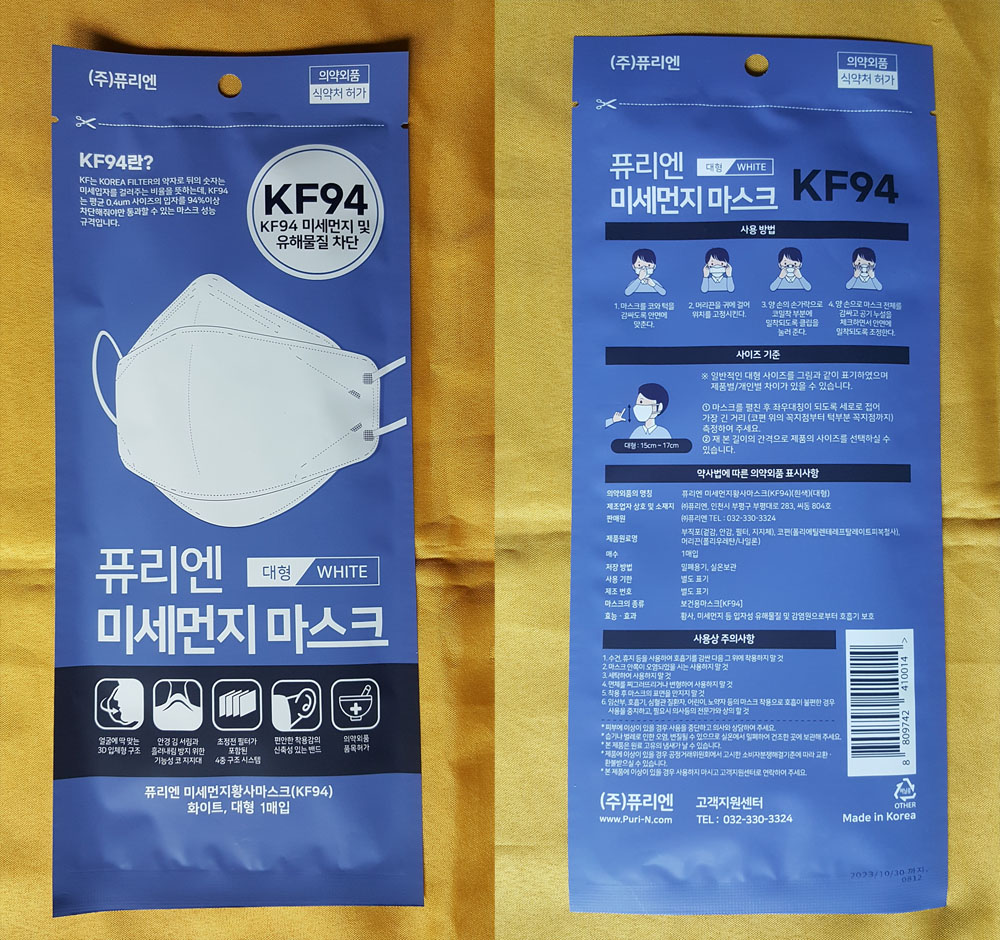 아래에 있는 것은 퓨리엔 미세먼지 마스크 [KF94] 제품 포장에 인쇄된 내용을 그대로 옮겨온 것입니다.