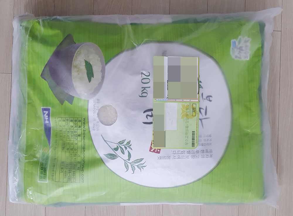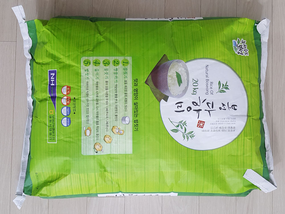 ▼ 보성 다향미 20kg은 두꺼운 비닐에 포장된 상태로 배송되었습니다.