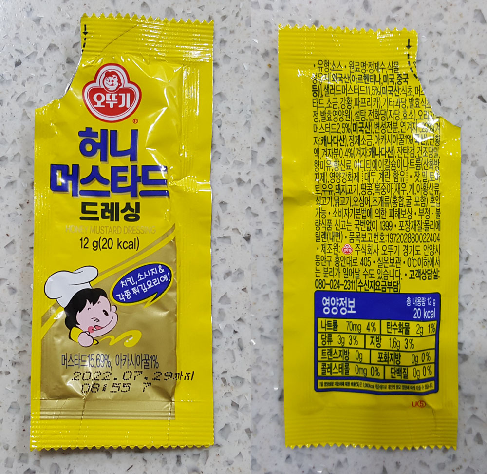 오뚜기 허니머스타드 드레싱 12g 원재료, 칼로리, 영양정보, 유통기한, 보관방법 外