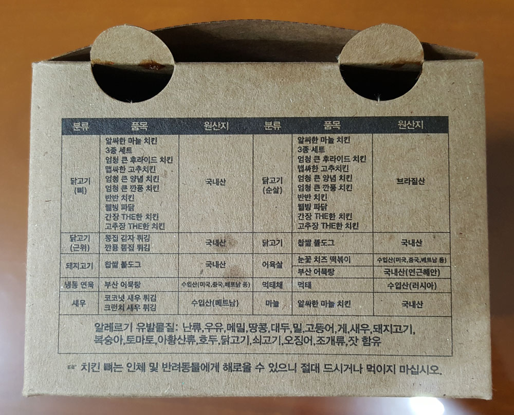 ☞ 치킨 뼈는 인체 또는 반려동물에게 해로울 수 있으니 절대 드시거나 먹이지 마십시오.