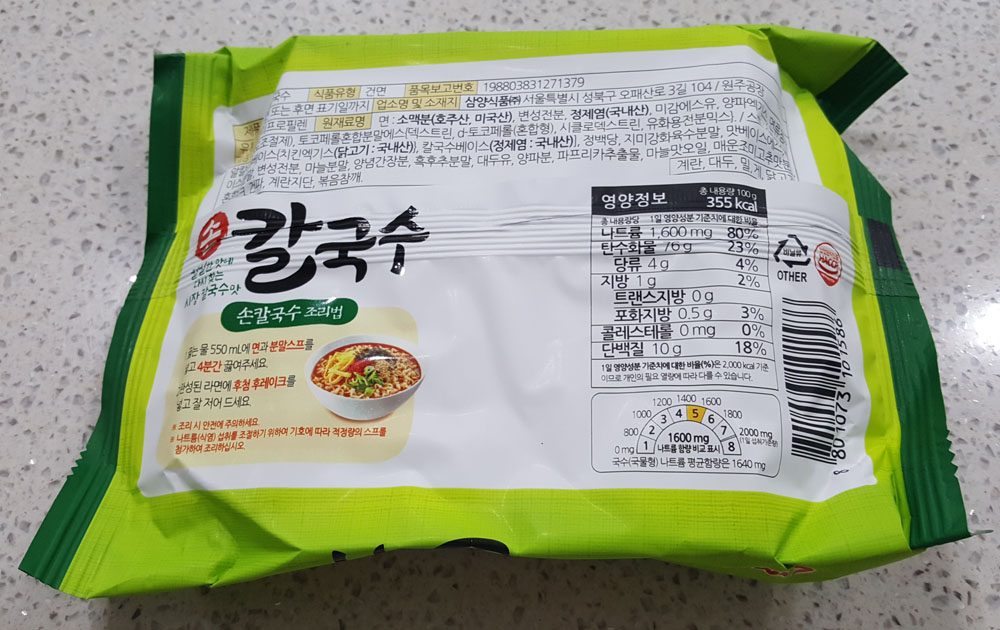 삼양 손칼국수 (5개입) 가격, 중량, 칼로리, 원재료 및 영양정보, 삼양 손칼국수 유통기한 外