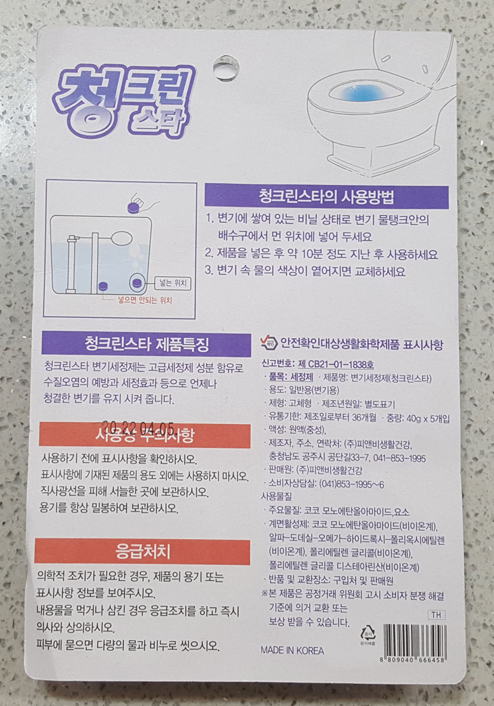 청크린스타 변기세정제 중량, 가격, 유통기한, 원재료, 사용 방법, 주의사항 外