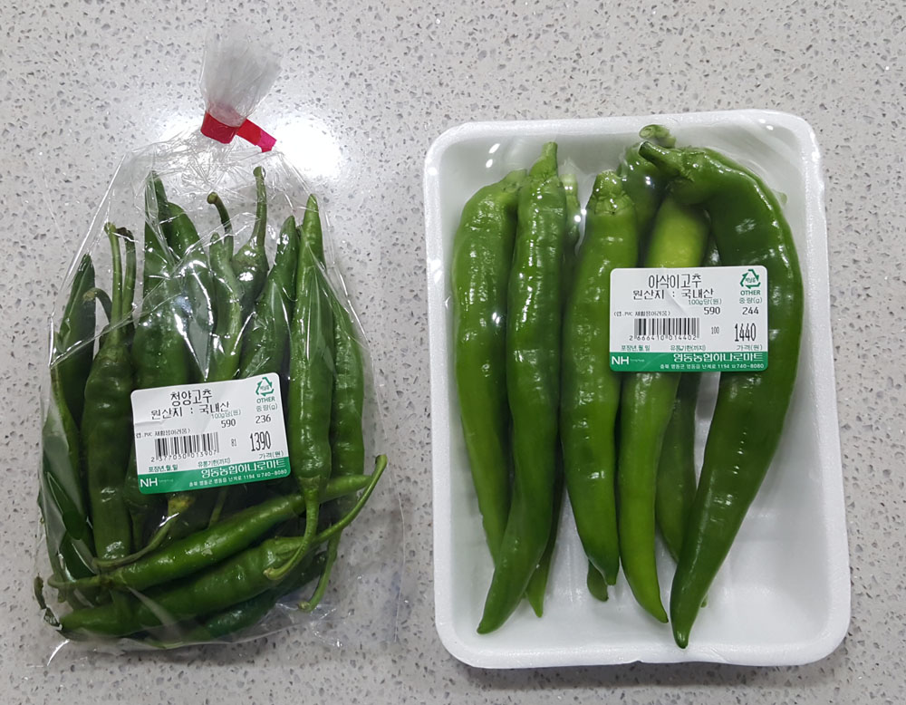 - 청양고추의 가격은 100g당 590원입니다.