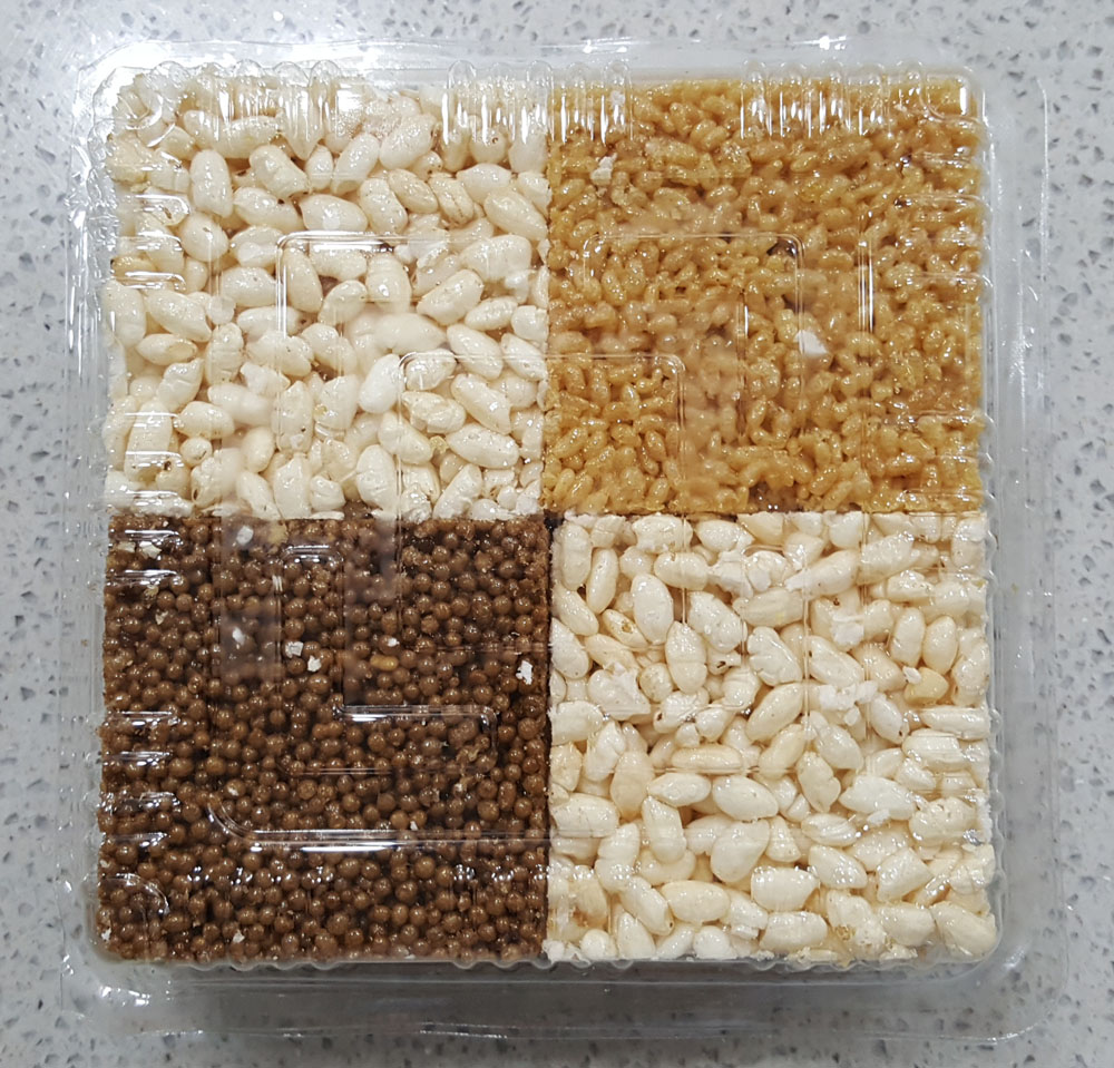 쌀 (중국산 100%), 소맥분 (밀/ 미국, 호주산), 호박씨 (외국산, 중국), 설탕 (수입산), 물엿 (옥수수, 수입산), 카라멜