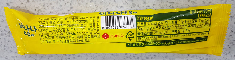 롯데제과 바나나우유바 막대 아이스크림 내용량, 가격, 칼로리, 제조일, 원재료 및 영양정보 外
