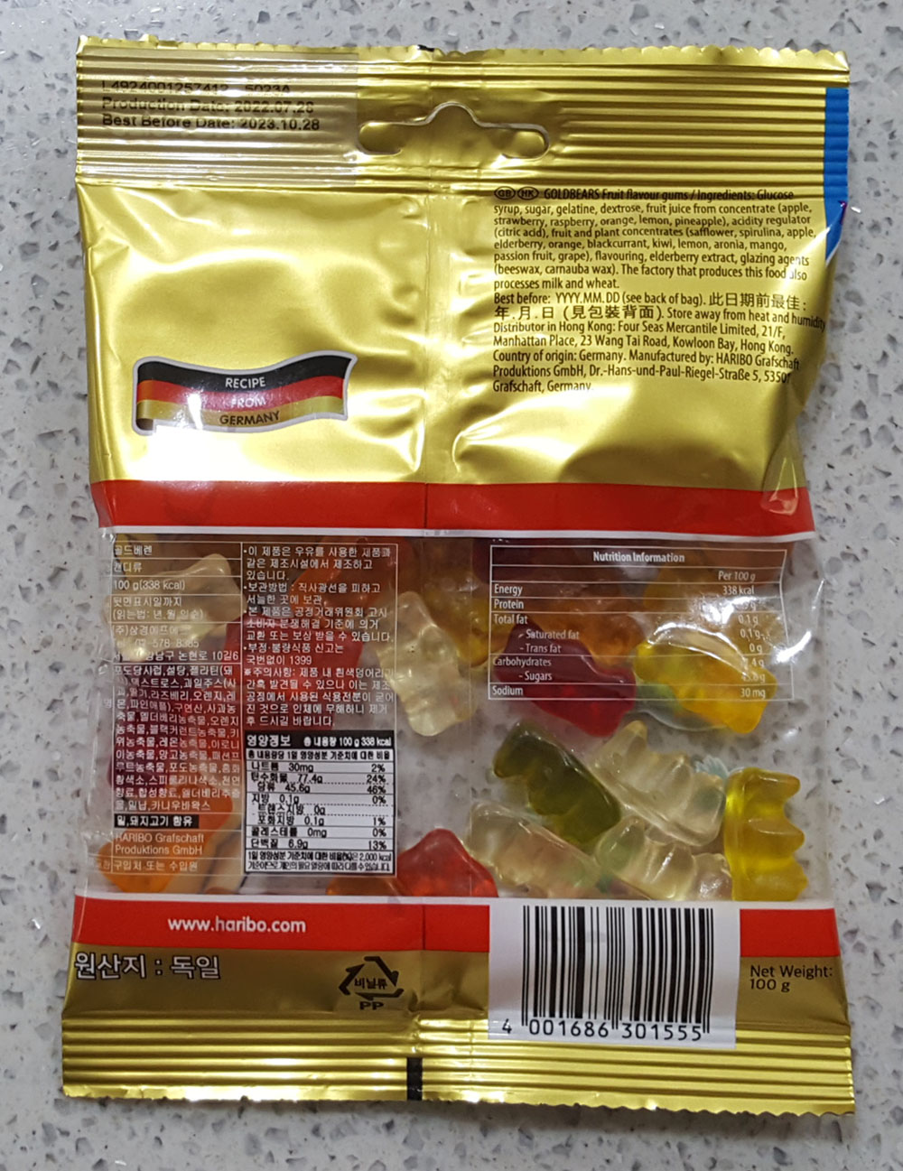 하리보 골드베렌 내용량, 칼로리, 가격, 원산지, 유통기한, HARIBO Goldbären 원재료 및 영양정보 外