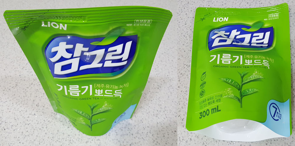 - 녹차니까 기름기 뽀드득! : 참그린 녹차 뽀드득은 100% 청정 제주 녹차를 사용합니다. 녹차는 기름기를 제거하는데 효과적이며 카테킨 성분이 풍부하여 피부 진정 작용에 좋습니다.