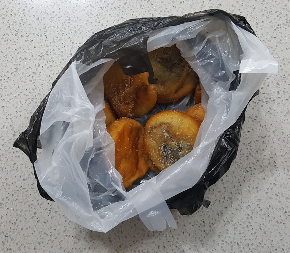 - 장날에 빵을 자주 구매하던 곳에서 튀김 단팥빵을 만들지 않는 것으로 보여 튀김 단팥빵을 구매할 생각을 하지 않았는데, 시장 골목 구석 모퉁이에서 빵을 파는 것을 보고 구매하게 됩니다.