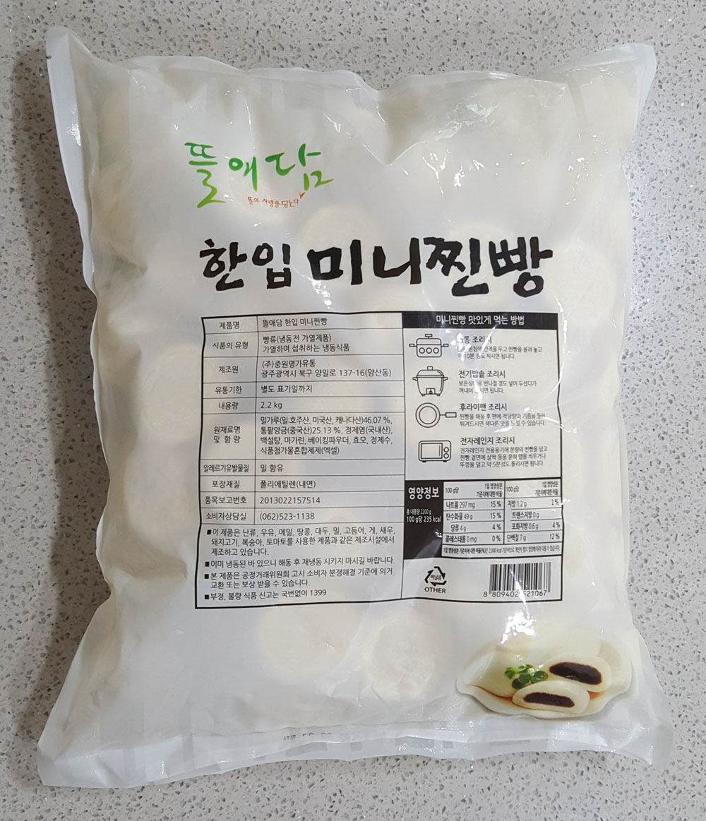 뜰애담 한입 미니찐빵 2.2kg 칼로리, 가격, 보관 방법, 유통기한, 미니 찐빵 원재료 및 영양정보 外