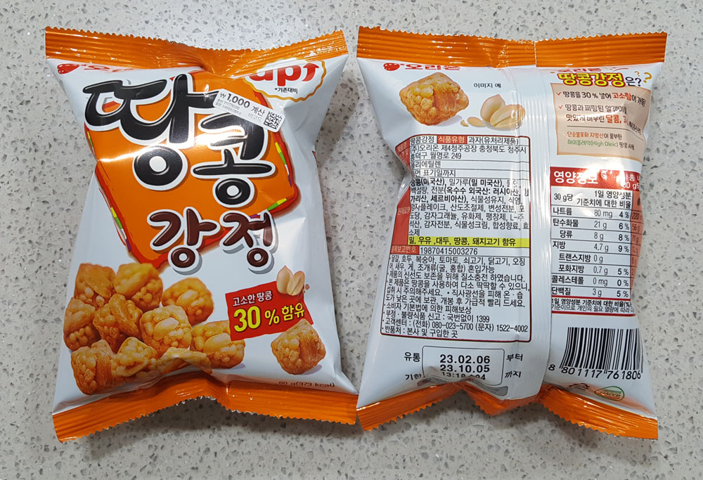 3. 오리온 땅콩강정 80g : 1,000원 × 2봉 = 2,000원