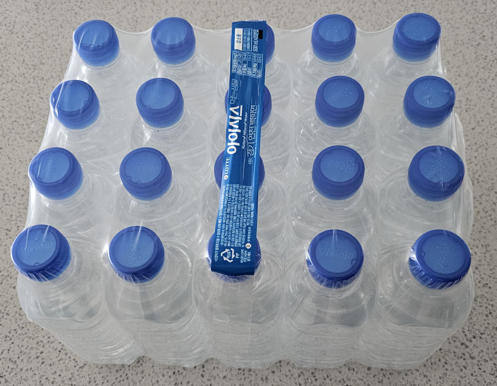 근처 마트에서 무라벨 생수 아이시스 먹는 샘물(500mL, 20본)과 빙그레 떡붕어 싸만코(150mL)를 구매했습니다.