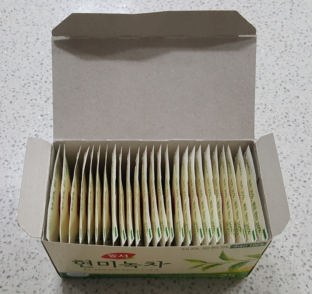 아래에 있는 것은 동서 현미녹차 25티백 제품에 관한 정보로, 예전에 기록했던 동서 현미녹차 100티백 제품과 조금 다른 부분이 있어 관련 내용을 추가로 작성합니다.