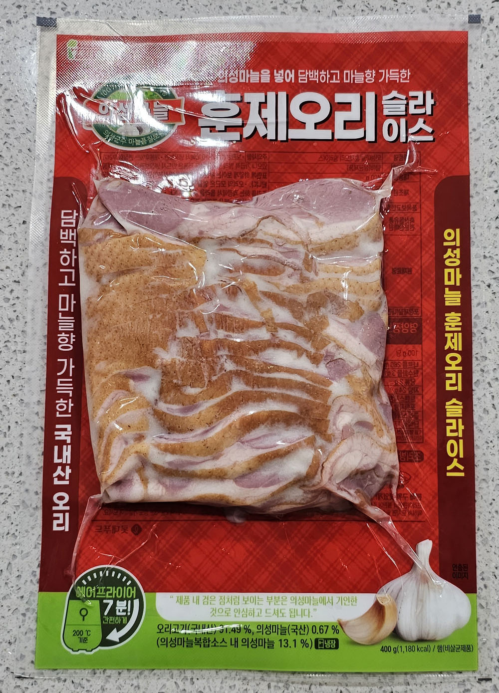 아래에 있는 것은 의성마늘 훈제오리 슬라이스 400g 제품에 관한 정보로
