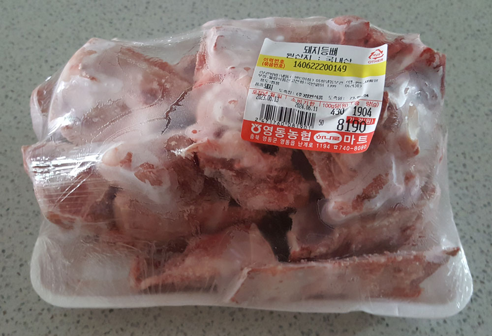4. 돼지 등뼈 (국내산) 1904g : 8,190원
