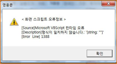 오류 내용 : [Source]Microsoft VBScript 런타임 오류....[Description] 형식이 일치하지 않습니다.........