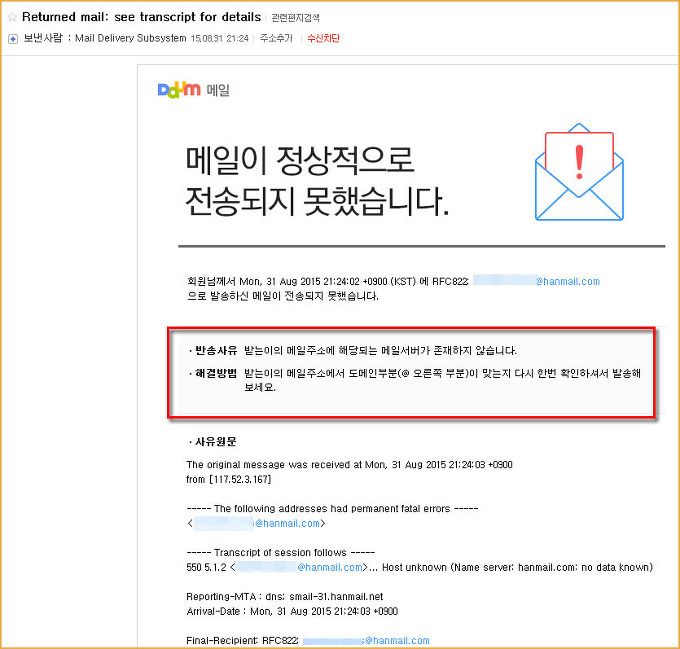 다음 메일 반송(Returned mail), 메시지가 의미하는 것