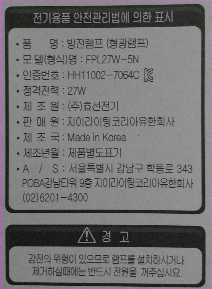 그래서 (형광)램프에 이상이 있는 것이 아닌가 생각되어 구매한 곳으로 가서 스탠드 전용 램프를 교환했습니다.