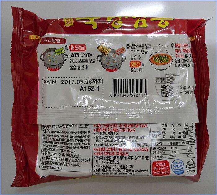 오뚜기 북경짬뽕 가격, 유통기한, 조리방법, 원재료명, 영양성분, 라면 국물 나트륨 섭취량 外