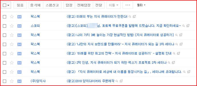 광고 이메일 수신거부를 하면 더 편할 것입니다.