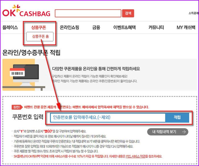 1. OK캐쉬백 홈페이지에서 온라인/영수증 쿠폰 적립 방법