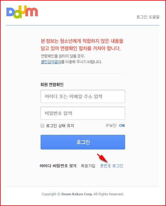 ▲ 다음 폰번호 로그인 부분이 있었던, 과거의 다음 로그인 화면