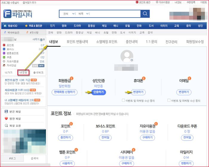 <파일시티 홈페이지 성인인증 방법>