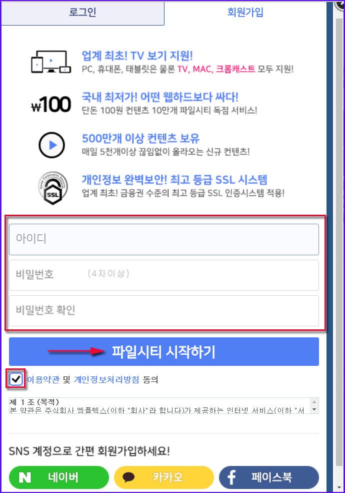 파일시티 회원가입 방법은 무척 간단한데