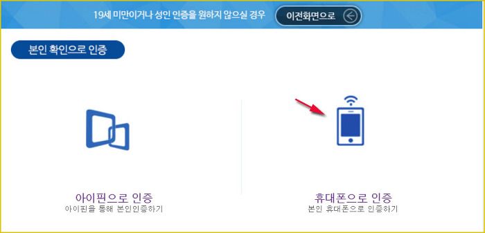 본인(성인)인증을 해야 합니다.