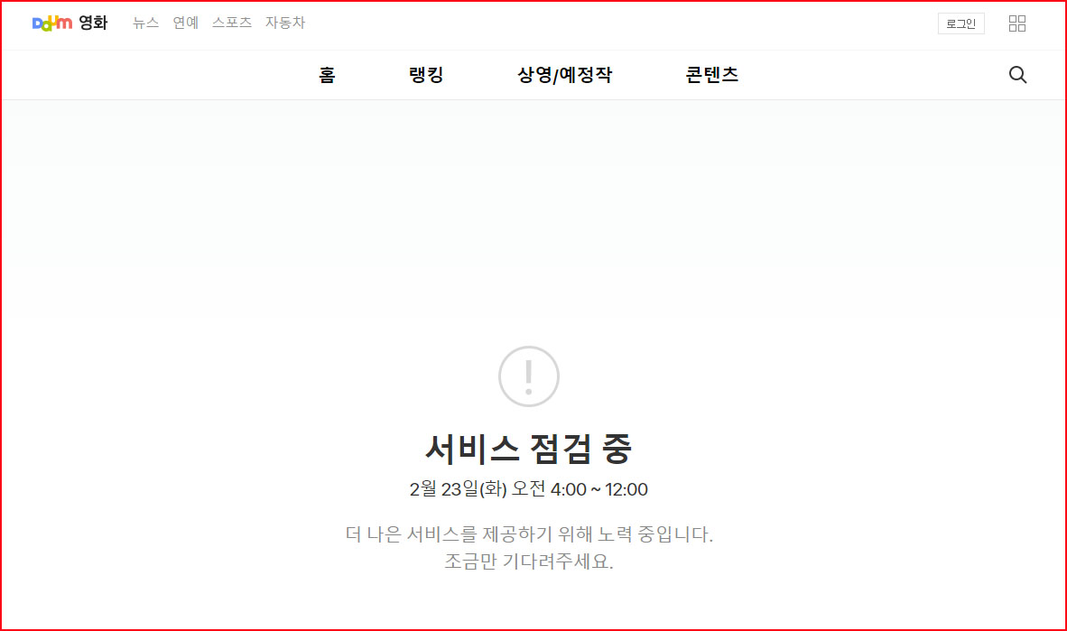 다음 영화 서비스 점검 (2021년 2월 23일 화요일 04시 ~ )